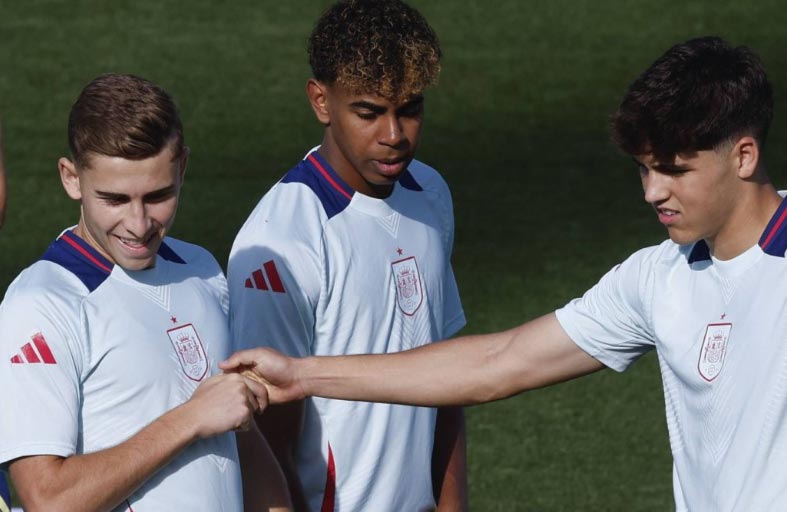 في المقابل، بقيَ زميله في النادي الكاتالوني، الجناح الشاب يامين جمال (16 عاماً) في القائمة إلى جانب زميله الآخر لاعب الوسط فيرمين لوبيس.