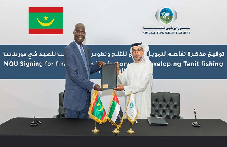 وقع صندوق أبوظبي للتنمية أمس مذكرة تفاهم مع الحكومة الموريتانية لتمويل مشروع تطوير المرافق والخدمات الأساسية في ميناء تانيت للصيد، إضافة إلى إنشاء مصنع للثلج يسهم في حفظ الأسماك وتبريدها ورفع القدرة التصديرية، بقيمة تقارب 24 مليون درهم إماراتي ما يعادل 6.5 مليون دولار أمريكي.