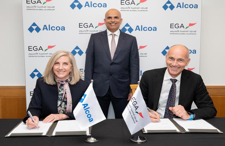 وقعت شركة ألكوا الأمريكية، والإمارات العالمية للألمنيوم اتفاقية جديدة طويلة الأجل، بحيث تزود شركة ألكوا بموجب هذه الاتفاقية الإمارات العالمية للألمنيوم بالألومينا، المادة الأولية الأساسية لصناعة الألمنيوم.