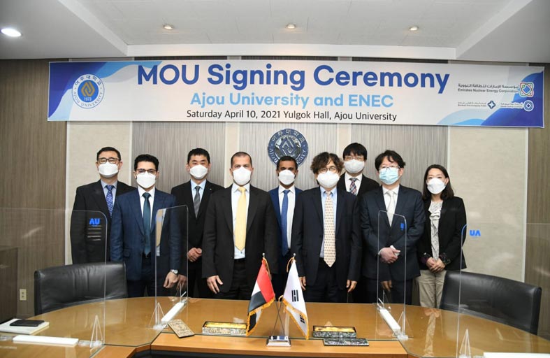 تعد “جامعة آجو “ التي تأسست في العام 1973 من أهم الجامعات البحثية الرائدة في مجالات الهندسة والطاقة وتكنولوجيا المعلومات بالإضافة إلى كونها المؤسسة الأكاديمية الأولى في كوريا الجنوبية التي تؤسس مركز بحث متخصصا في الطاقة. وتتولى مؤسسة الإمارات للطاقة النووية مسؤولية تطوير البرنامج النووي السلمي الإماراتي ومشروعه الريادي المتمثل بمحطات براكة للطاقة النووية السلمية إحدى أكبر محطات الطاقة النووية على مستوى العالم. و بعد تأسيسها في العــــــام 2009 توفـــــــر مؤسسة الإمارات للطاقة النووية طاقــــــــة كهربائيـــــة آمنة وموثوقة وصديقة للبيئة باستخدام الطاقـــــــة النووية وذلك لدعم النمو الاجتماعي والاقتصادي المستدام في دولة الإمارات.