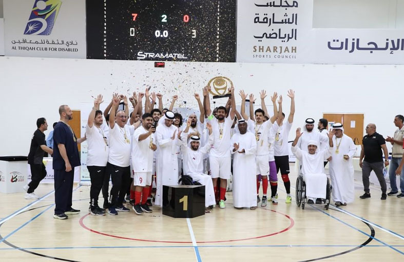 توج فريق نادي الثقة للمعاقين بلقب النسخة الـ12 من دوري كرة القدم للصالات لذوي الإعاقة السمعية الذي تنظمه لجنة الإمارات لرياضة الصم التابعة للجنة البارالمبية الوطنية، محققاً إنجازه الأول في تاريخ المسابقة وذلك عقب فوزه على فريق نادي عجمان لأصحاب الهمم بنتيجة 7-0 في المباراة الختامية التي أقيمت مساء أمس الأول على صالة نادي الثقة بالشارقة.سجل اللاعب أرمان محمد رشيد 5 أهداف فيما أضاف زميله عبدالله عمر أحمد هدفين، ليقودا فريقهما إلى صدارة الترتيب بالعلامة الكاملة (24 نقطة) من 8 انتصارات متتالية خلال مرحلتي الدوري.