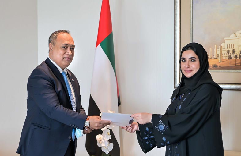 وتمنّت المحرزي لسفير دولة توفالو التوفيق والنجاح في أداء مهام عمله بما يعزز علاقات التعاون الوثيقة بين دولة الإمارات وبلاده.