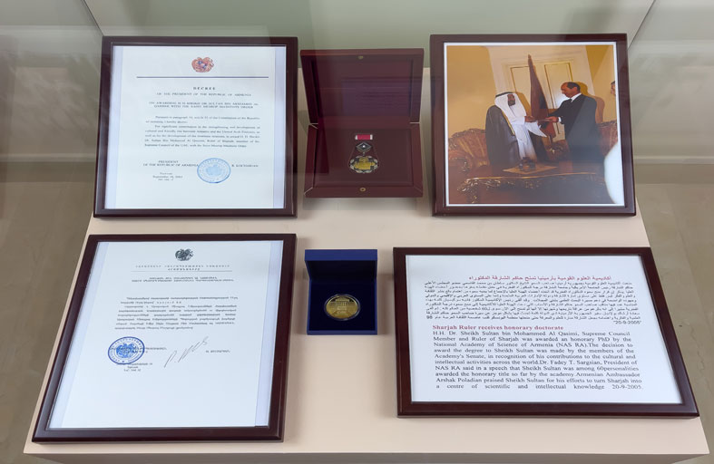 اختارت دارة الدكتور سلطان القاسمي،ضمن مشروع “قصة جائزة” شهادة “الدكتوراة الفخرية” التي منحتها أكاديمية العلوم القومية بجمهورية أرمينيا، إلى صاحب السمو الشيخ الدكتور سلطان بن محمد القاسمي، عضو المجلس الأعلى حاكم الشارقة في سبتمبر 2005. ووقع اختيار الدارة على الدكتوراة الفخرية التي منحتها الأكاديمية الأرمينية، لتكون قصة شهر أكتوبر2023 لعراقة تاريخها وشهرتها ولأهميتها؛ إذ لم تمنح في ذلك الوقت سوى لـ 60 شخصية حول العالم. وكان أعضاء الهيئة العليا للأكاديمية قد اتخذوا بالإجماع قرار منح صاحب السمو حاكم الشارقة، الدكتوراة الفخرية، لما يبديه سموه من اهتمام بالغ بنشر الثقافة والعلم والفكر ليس فقط على مستوى إمارة الشارقة ودولة الإمارات العربية المتحدة، وإنما على المستوى العربي والإقليمي والدولي، وما يبذله من جهود واضحة في دعم مسيرة البحث العلمي في شتى المجلات. كما ألقى صاحب السمو حاكم الشارقة خلال تلك المناسبة التي عقدت بمقر الأكاديمية، كلمة أعرب فيها عن شكره على هذا التقدير والاهتمام.. وبيّن مراحل المسيرة التعليمية في الشارقة بما فيها قطاع التعليم العالي بداية من تأسيس الجامعة الأميركية بالشارقة ومروراً بتأسيس مختلف الكليات بجامعة الشارقة بالتعاون مع الجامعات والمعاهد الأكاديمية المتخصصة. كما تم منح سموه في ذلك الوقت خلال زيارته جامعة يريفان الحكومية في أرمينيا الميدالية الذهبية وهي أعلى وسام تمنحه الجامعة العريقة التي تأسست في 1919 وذلك لجهود سموه الكبيرة في ميادين التعليم والثقافة.