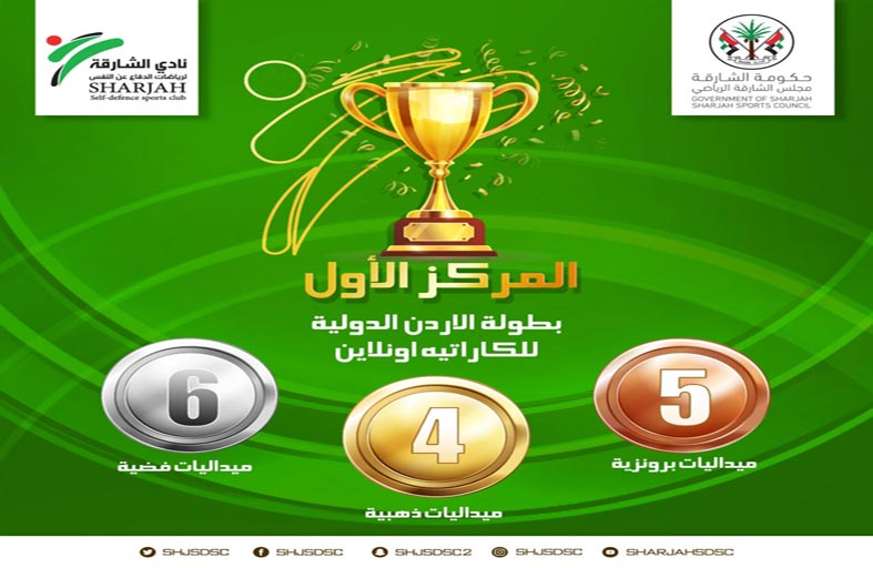 حصد لاعبو نادي الشارقة لرياضات الدفاع عن النفس في رياضة الكاراتيه كأس المركز الأول في بطولة الأردن للكاتا التي أقيمت افتراضيا بمشاركة 46 ناديا من 11 دولة وبواقع 186 لاعبا ولاعبة.