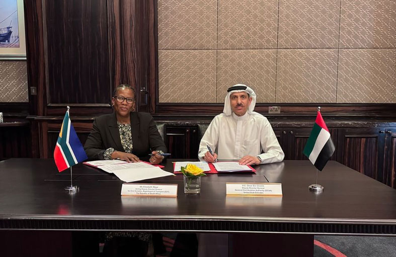 وقعت دولة الإمارات، متمثلة بالهيئة العامة للطيران المدني، محضر مناقشات أولي «سجل مناقشات بالأحرف الأولى» مع جمهورية جنوب أفريقيا.