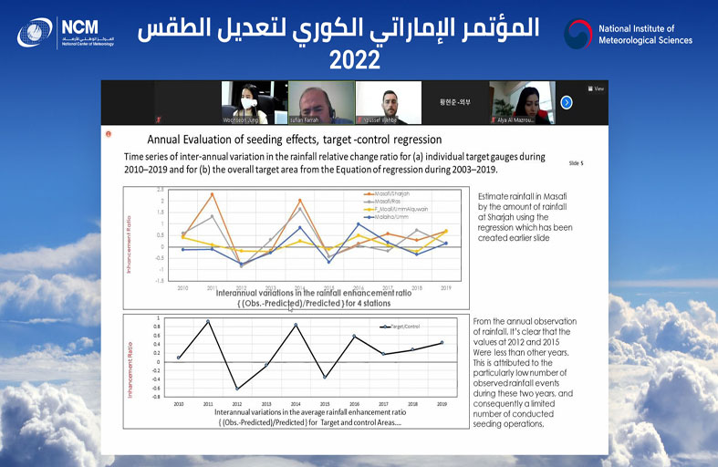 عقد المركز الوطني للأرصاد ممثلاً ببرنامج الإمارات لبحوث علوم الاستمطار، المؤتمر الكوري الإماراتي لتعديل الطقس 2022، وذلك عبر تقنية الاتصال المرئي.