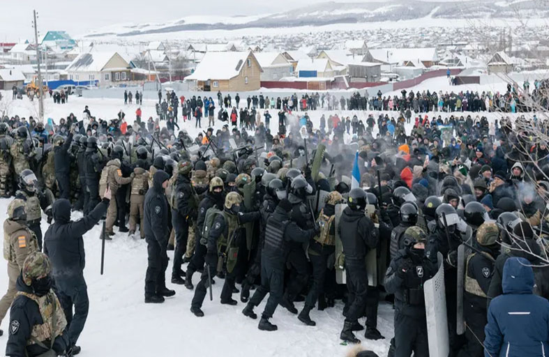 وتم تفريق المتظاهرين في بايماك بالغاز المسيل للدموع فيما اعتقل نحو عشرين شخصا بحسب منظمة  OVD-Info المتخصصة غير الحكومية، التي تصنفها الدولة الروسية «عميلا أجنبيا».