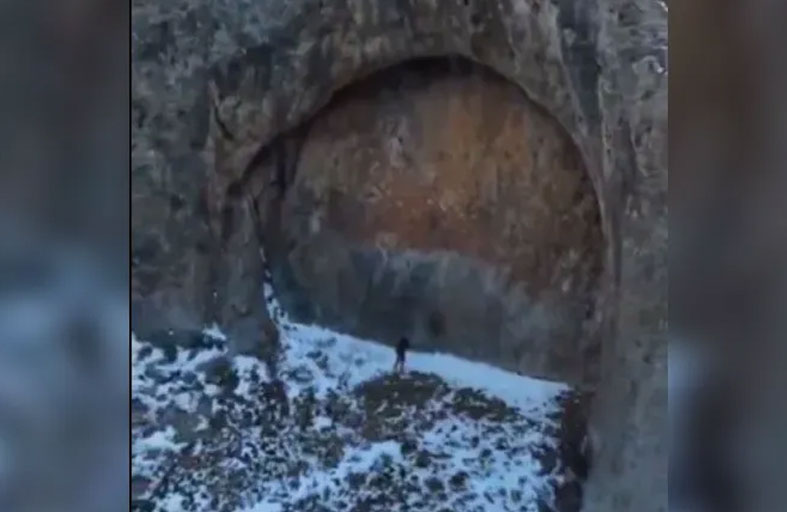 أثار مقطع فيديو قصير نُشر عبر منصات التواصل الاجتماعي موجة من التساؤلات والجدل، بعدما أظهر ما يشبه بابا ضخما محفورا في صخور جبلية نائية في سلسلة جبال "دزونغار الأتاو" شمال شرقي كازاخستان، بالقرب من الحدود الصينية. الفيديو الذي لا تتجاوز مدته 30 ثانية، نُشر أولًا على منصة Reddit ثم أعيد تداوله على موقع إكس يظهر فيه مستكشفان وهما يقتربان بحذر من التشكيل الصخري المثير للريبة وسط الثلوج، قبل أن تكشف كاميرا جوية عن ما يبدو أنه مدخل نصف دائري ضخم، يشبه أبواب المعابد أو الحصون القديمة. اللقطات دفعت بعض المستخدمين على الإنترنت إلى اعتبار الموقع دليلًا على وجود "حضارات فضائية قديمة"، بينما تساءل آخرون ممازحين عما إذا كان هناك سفينة فضائية خلف الباب. رغم الحماس والتفسيرات الخارقة، قد يكون هذا التشكيل الصخري مجرد ظاهرة جيولوجية طبيعية. بحسب خبراء، فإن التكوين يشبه ما يُعرف بمرحلة بداية تكوّن الأقواس الصخرية، وهي ظاهرة شائعة في مناطق مثل جنوب يوتا بالولايات المتحدة. ويعود السبب غالبًا إلى اختلاف معدلات تآكل الطبقات الصخرية بسبب عوامل الطقس والزمن.