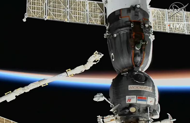 ارتدى رواد الفضاء بدلات الفضاء وقاموا بخفض ضغط غرفة معادلة الضغط عندما ظهر التسريب في بث مصور مباشر.كانت هذه هي المرة الثانية التي يضطر فيها رائدا الفضاء الروسيان إلى إلغاء السير في الفضاء.