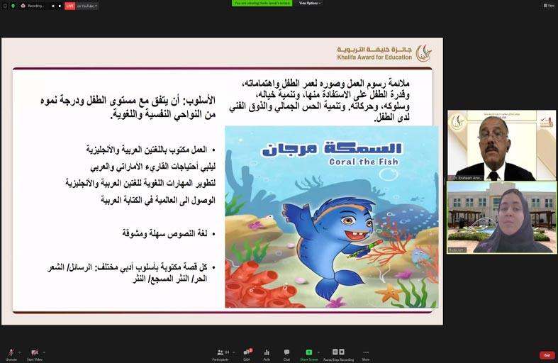 وأكدت أمل العفيفي الأمين العام لجائزة خليفة التربوية على أهمية هذه الورشة التي تسلط الضوء على منظومة واسعة من التشريعات والقوانين والرعاية الاجتماعية التي أقرتها دولة الإمارات العربية المتحدة لحقوق الطفل ورعايته والاهتمام به ضمن أفضل الممارسات العالمية، مشيرة إلى أن مجال التأليف التربوي للطفل – فئة الإبداعات التربوية يمثل أحد المجالات الحيوية للجائزة ويحظى هذا المجال بإقبال كبير من المرشحين من مختلف المؤسسات التربوية لما له من أهمية في توجيه التأليف القصصي والأدبي إلى زوايا تربوية تعزز مسيرة الطفولة محلياً وعربياً . ومن جانبه تطرق الدكتور إبراهيم أمين إلى أهمية مرحلة الطفولة من الناحية التربوية وما يرتبط بهذه المرحلة من خصائص وسمات تحدد نمو الطفل واحتياجاته، ومن هنا فإن مجال التأليف التربوي للطفل يمثل أحد المجالات الواعدة التي تفتح آفاقاً واسعةً من الإبداع والتميز أمام الأطفال قادت الغد، كما أن الكتابة للطفل تحتاج من الكاتب دراية كاملة لسمات مرحلة الطفولة وخصائصها من النواحي الفكرية والإبداعية التي تجعل من العمل الإبداعي مع هذه الشريحة من الأطفال . ودعا الدكتور إبراهيم أمين عازم المؤلفين الراغبين في التوجه إلى الطفل إلى ضرورة فهم خصائص هذه المرحلة بصورة كاملة بما يجعل الرسالة المستهدفة واضحة ومباشرة في أهدافها المنشودة للطفل . ومن جانبها عرضت هدى محمود جمال تجربتها في الفوز بالجائزة خلال الدورة الماضية مشيرة إلى أن التأليف بصورة عامة هو موهبة ودراسة وعلم أيضاً له قواعده وأصوله، وأن الكتابة الأدبية للطفل من الناحية التربوية تمثل أحد الفروع المهمة التي ينبغي على الكتاب أو المؤلف الإلمام الكامل بعناصرها والعوامل المحيطة بها بما يكفل تحقيق الأهداف المرتبطة بهذا العمل الأدبي الموجه للطفل .