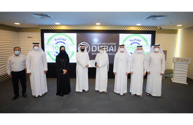 تسلم مجلس دبي الرياضي ختم "100% لا ورقية" من مؤسسة دبي الذكية، ليكون أول مؤسسة رياضية تحول جميع خدماتها ومعاملاتها إلى معاملات لا ورقية من خلال الحلول الرقمية والتطبيقات الذكية.