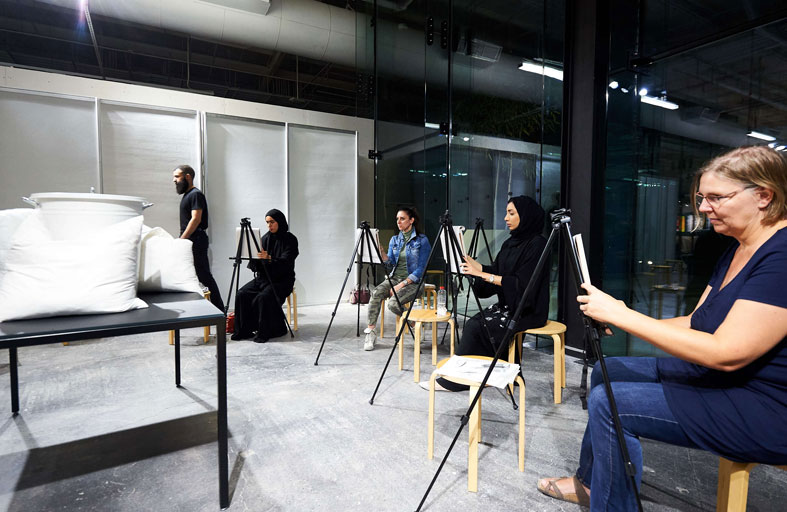 سيبدأ المشاركون بأساسيات الرسم من خلال رسومات سريعة، والتعرف على التكوين وإيجاد طرق متعددة له، الأمر الذي يعد جزءا أساسيا من الرسم، ثم سيستكشفون القيم، ودرجات الألوان، والألوان الخفيفة، والظلال، ودرجة الحرارة، ومزج الألوان، لينتقلوا بعدها إلى تنفيذ عمل فني تجريدي ملون بأطراف حادة، ويمارسون التحريف البصري باستخدام نظام ألوان متشابه.