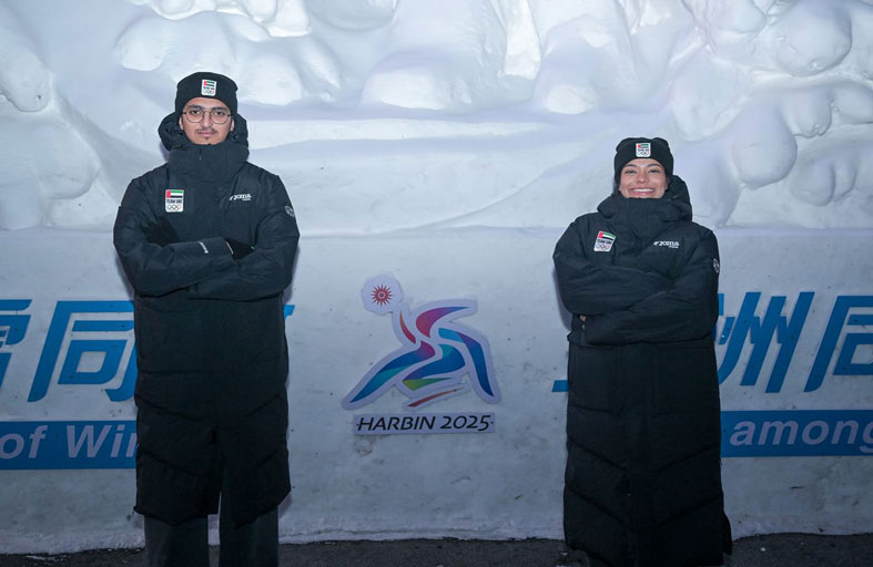 آمنة وسلطان يحملان علم الإمارات في افتتاح الألعاب الآسيوية الشتوية