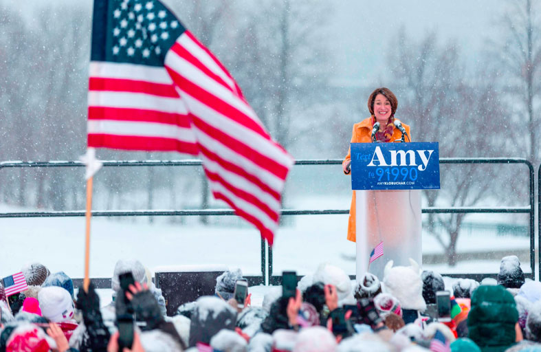 رغم تساقط الثلج في مينيابوليس لم يؤثر البرد في آيمي كلوبشر. في العاشر من فبراير 2019، كانت سناتورة ولاية مينيسوتا، ترتدي وشاحًا ومعطفًا أصفر ولكن بدون قفازات، تتحدى عناصر الطبيعة لتعلن رسميًا عن ترشّحها لخوض الانتخابات التمهيدية الديمقراطية.