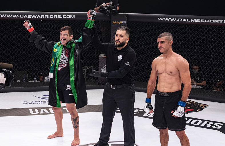قدم المقاتلون الإماراتيون أحمد الدرمكي ويوسف الحوسني أداءً مثالياً ضمن نزالات النسخة 11 من “محاربي الإمارات” التي اختتمت فعالياتها يوم الجمعة 12 يونيو في صالة جوجيتسو أرينا بالعاصمة أبوظبي. حيث قدّم نجم محاربي الإمارات المخضرم أحمد الدرمكي عرضاً قتالياً مبهراً في مواجهته ضد الكاميروني كايجمو كيجا تمكن خلاله من الفوز في الدقيقة الثالثة من أولى جولات النزال عن طريق استلام الخصم بسبب خنقة المقصلة الأمامية، فيما استطاع المقاتل يوسف الحوسني من تحقيق نتيجة مماثلة في نزاله الاحترافي الأول الذي واجه خلاله خصمه المصري محمد علام وتمكن من تحقيق فوز مستحق في الدقيقة الأولى من أحداث النزال بواسطة استلام الخصم بأسلوب الخنقة الخلفية.