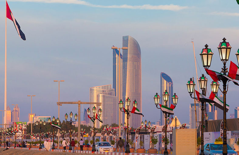 أبوظبي تتزين بشعار عيد الاتحاد الـ 51 والتشكيلات الضوئية