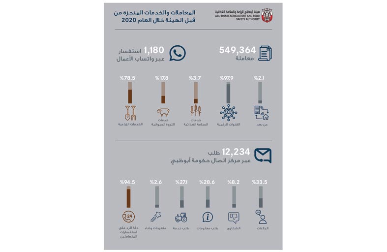 أبوظبي للزراعة تنجز أكثر من 549 ألف معاملة خلال 2020