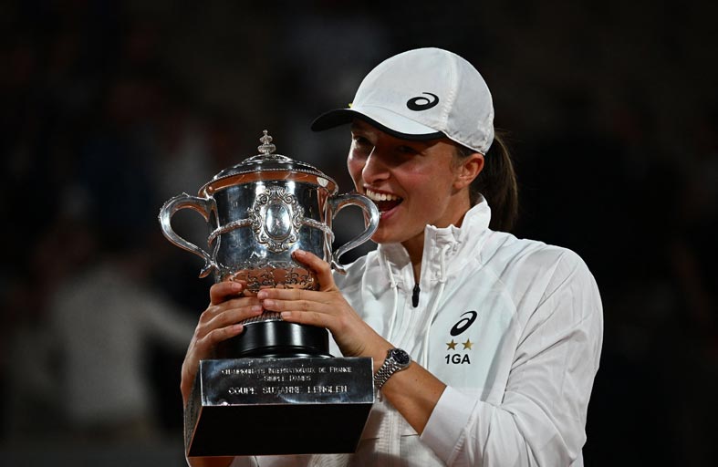 وقبلها بأسابيع قليلة ، توجت البولندية إيجا شواتيك بلقب بطولة فرنسا المفتوحة "رولان جاروس" علما بأنه كان النهائي الثاني لها فقط بعد نهائي البطولة نفسها في 2020 ، والذي توجت فيه بلقبها الوحيد السابق في هذه البطولات.