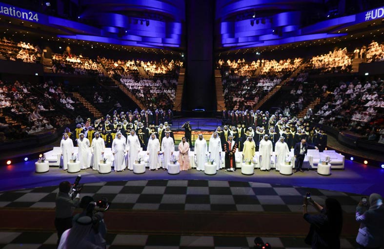 كرم سمو الشيخ أحمد بن سعيد آل مكتوم رئيس هيئة دبي للطيران المدني، رئيس مؤسسة مطارات دبي، الرئيس الأعلى الرئيس التنفيذي لطيران الإمارات والمجموعة، الدفعة 21 دفعة عام 2024 من طلبة جامعة دبي والبالغ عددهم 256 خريجاً وخريجة خلال الحفل الذي نظمته الجامعة على مسرح "لابيرل" بمدينة الحبتور في دبي، لحصولهم على شهادات الدكتوراه والماجستير والبكالوريوس في مختلف التخصصات، تحت رعاية سمو الشيخ حمدان بن محمد بن راشد آل مكتوم ولي عهد دبي رئيس المجلس التنفيذي لإمارة دبي.
