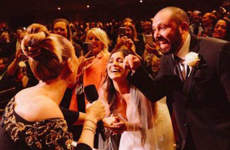 تفاجأت النجمة العالمية أديل بتواجد عروسين في حفلها الغنائي الأخير في لا فيغاس، بعد أن كان تواجدهما لافتًا للأنظار. ولم تتوانَ أديل عن الاقتراب من العروسين وتهنئتهما على المسرح مباشرةً، وترك إمضاء على فستان العروس الأبيض، بعد أن طلبته الأخيرة، كنوع من أنواع الذكرى التي ستتخلد معها. حيث تبين أن العروسين من عشاق أديل، وذلك نظرًا للسعادة التي أظهراها باقترابها منهما. الجدير بالذكر، كشف موقع “ديلي ميل” البريطاني، أن مصدراً موثوقاً ومقرباً من أديل، أكد أن خطوبة أديل وريتش بول قد تمت بالفعل، وسيقيمان حفل زفاف خلال الصيف القادم، مع انتظار إعلانهما الرسمي.