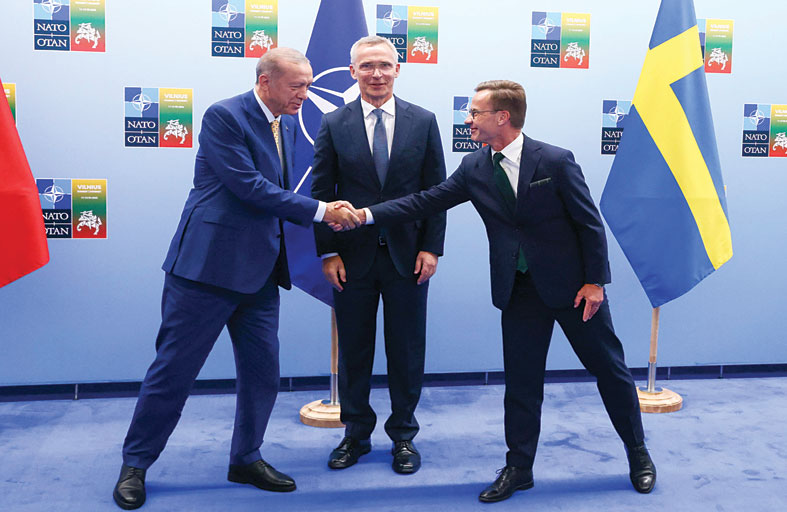 وربط أردوغان على نحو مفاجئ أمس موافقة أنقرة على انضمام السويد لحلف شمال الأطلسي، بإتمام انضمام تركيا إلى الاتحاد الأوروبي.وقال في تصريحات قبل مغادرته للمشاركة في قمة حلف شمال الأطلسي في فيلنيوس عاصمة ليتوانيا: أدعو من هنا تلك الدول التي جعلت تركيا تنتظر على باب الاتحاد الأوروبي لما يزيد على 50 عاما.