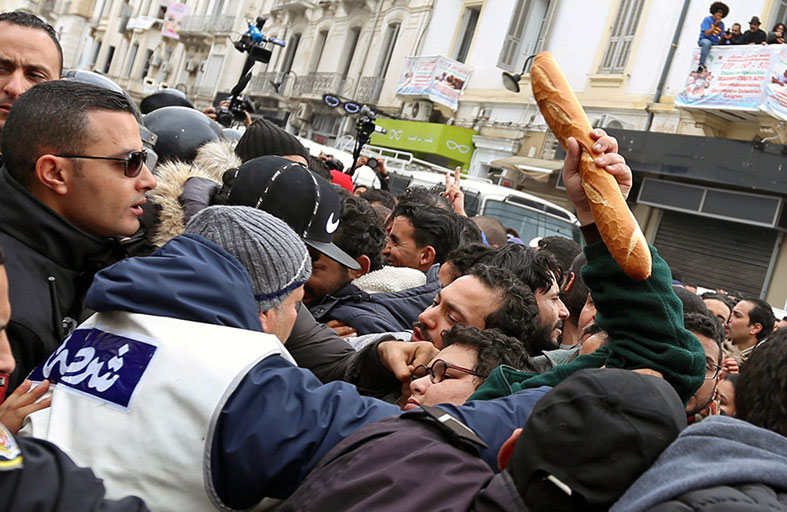 يعتبر الكثير من التونسيين أن أزمة مادة الخبز التي تعد عنصرا أساسيا من غذائهم اليومي ناتجة عن توقف أصحاب المخابز عن إعداد الخبز العادي المدعوم من الدولة مقابل إنتاج أصناف أخرى من الخبز تبلغ أسعارها خمسة أضعاف سعر الخبز العادي.في المقابل، يرى آخرون أن الأزمة مردها عدم التزود بالفارينة (الدقيق) المدعوم من الدولة والذي يذهب لغير مستحقيه.