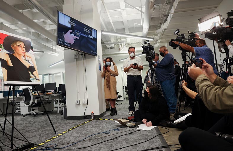 وقال المحامي براين بانيش في مؤتمر صحفي في لوس انجليس "الدعوى تتضمن أسماء أليك بالدوين وآخرين مسؤولين عن السلامة في موقع التصوير والذين أدى سلوكهم المستهتر وخفض التكاليف إلى وفاة هالينا هتشينز المأساوية".