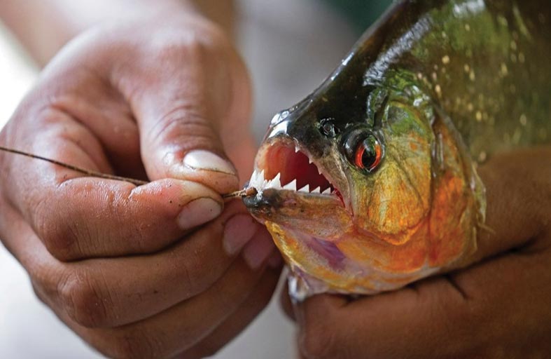 وتتسم أسماك البيرانا، بأسنان حادة وبارزة، وشديدة النهم لأكل اللحوم، إذ تقضي معظم وقتها في صيد فرائسها، معتمدة على تكتيكات مثل السرعة والمفاجأة.
