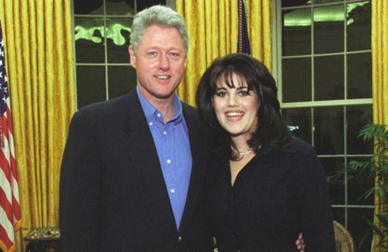 إنها إلى حد بعيد الفضيحة الجنسية الأكثر دويّا في القرن العشرين. كان بيل كلينتون نسونجيّا، وتضاعفت شائعات خيانته بمجرد دخوله السياسة. اعترفت مونيكا لوينسكي، متدربة سابقة في البيت الأبيض، 22 عامًا، لصديقتها ليندا تريب، بأنها كانت على علاقة بالرئيس بين 1995 و1997. سجّلت تريب المحادثات بشكل سري وأعطت الأشرطة إلى كينيث ستار، مدع عام مستقل يحقق في تهم أخرى تتعلق بال كلينتون. كما أخبرته أيضًا بالفستان الأزرق الملطخ بمنيّ كلينتون. نفى الرئيس بشدة تلك الاتهامات على شاشة التلفزيون في يناير 1998، قائلاً: “لم أمارس الجنس مع هذه المرأة، الآنسة لوينسكي”. هاج الجمهوريون، وأصبح الأمر فضيحة إعلامية ضخمة. ثم، في شهر أغسطس، أثبت تحليل الحمض النووي أنه يكذب. وأخيراً اعترف بأنه كان “ على علاقة جسدية غير مناسبة” مع المتدربة. أدت هذه الفضيحة إلى إجراءات العزل بسبب الكذب تحت القسم، لكن تمت تبرئته. لقد أكمل ولايته الثانية بشعبية كبيرة، لأن حملات الجمهوريين ضده ارتدت عليهم.