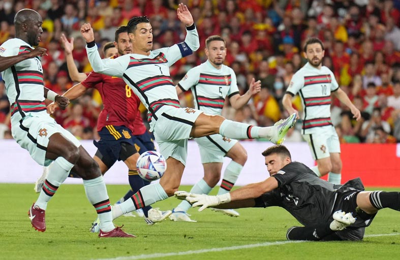 وفقدت اسبانيا صدارة المجموعة الثانية في الجولة الماضية بخسارتها على ارضها امام سويسرا 1-2،وهي الاولى لها على ارضها منذ عام 2018 بعد سلسلة من 22 مباراة بلا هزيمة، في حين تغلبت البرتغال على تشيكيا برباعية نظيفة لتتصدر كتيبة النجم كريستيانو رونالدو المجموعة برصيد 10 نقاط بفارق نقطتين عن اسبانيا.