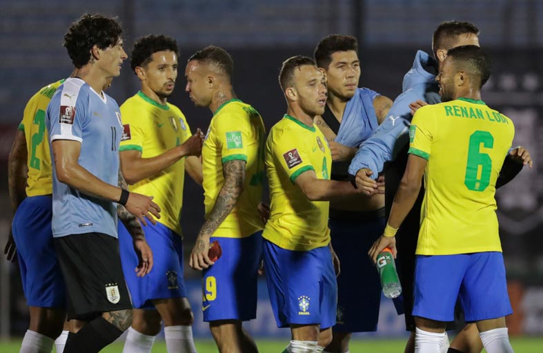 على ملعب "سنتيناريو" الشهير في مونتيفيديو، حسمت البرازيل مواجهتها منطقيا مع الأوروغواي في الشوط الاول، بهدفين من تسديدة لأرثر من خارج المنطقة ارتدت من الدفاع داخل الشباك (34) ورأسية جميلة لريشارليسون بعد عرضية من رينان لودي (45)، مستفيدة من غياب المهاجم لويس سواريز المصاب بفيروس كورونا المستجد ثم طرد المهاجم الآخر ادينسون كافاني في الشوط الثاني.