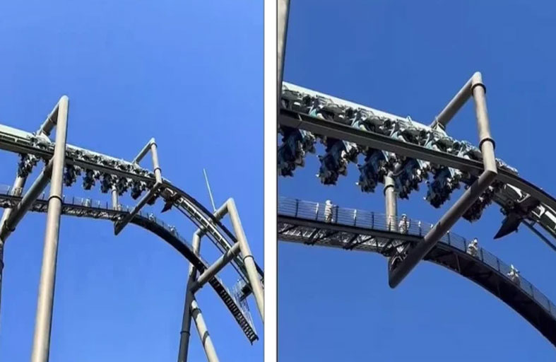وقالت مدينة الملاهي إن اللعب المزدحمة توقفت اضطرارياً في منتصف الطريق خلال الرحلة التي يبلغ طولها 1100 م عند ذروة ارتفاعها.