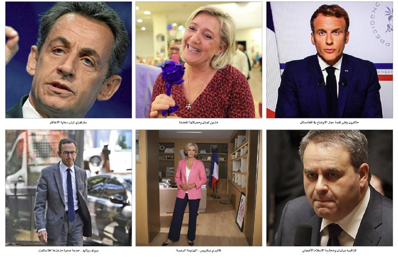 تسلل معظم المرشحين، من أقصى اليمين إلى ما يسمى باليمين الجمهوري، من الفتحة التي اخترقها إيمانويل ماكرون. أضاف كزافييه برتران “محاربة الإسلام الأصولي”، وهي “حرب جيلنا”. وشجبت فاليري بيكريس “الهزيمة الرهيبة في معركتنا ضد الإسلاموية”، التي “أعادت الظلامية “...” بعد عشرين عامًا من هجمات 11 سبتمبر”. وانزعج رئيس مجموعة الجمهوريين في مجلس الشيوخ، برونو ريتايو، من “موجة الهجرة المزعزعة للاستقرار».