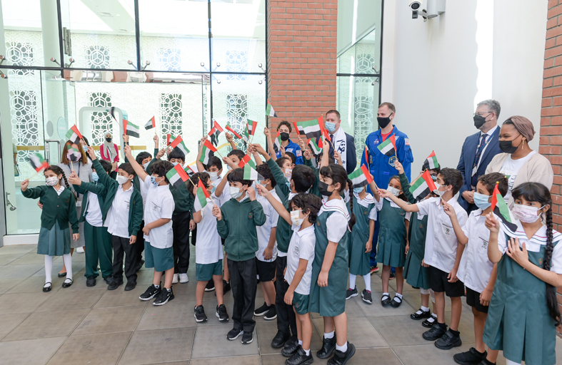 وكان برنامج رواد الفضاء قد بدأ بجولة في قسم المرحلة الأساسية، حيث اصطف الطلبة ملوّحين بأعلام دولة الإمارات تعبيراً عن اعتزازهم وفخرهم باستقبال أول رائد فضاء إماراتي وبلقاء فريق روّاد الفضاء الدوليين في الأكاديمية.