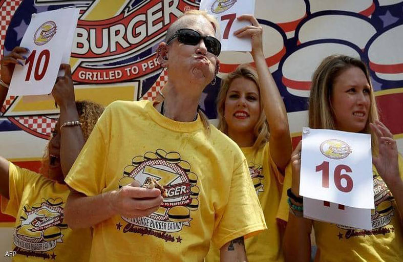 وتمكن أيضا خصمها السنوي دان كينيدي من التهام 34 شطيرة في البطولة السنوية، التي استضافتها سلسلة مطاعم الوجبات السريعة زد برغر. وتنافس 14 من أفضل المتسابقين المحترفين في الولايات المتحدة لمعرفة من يمكنه تناول أكبر عدد من شطائر البرغر في 10 دقائق للحصول على جوائز بقيمة 4350 دولارا من ضمنها الجائزة الكبرى وقيمتها 1750 دولارا نقدا.