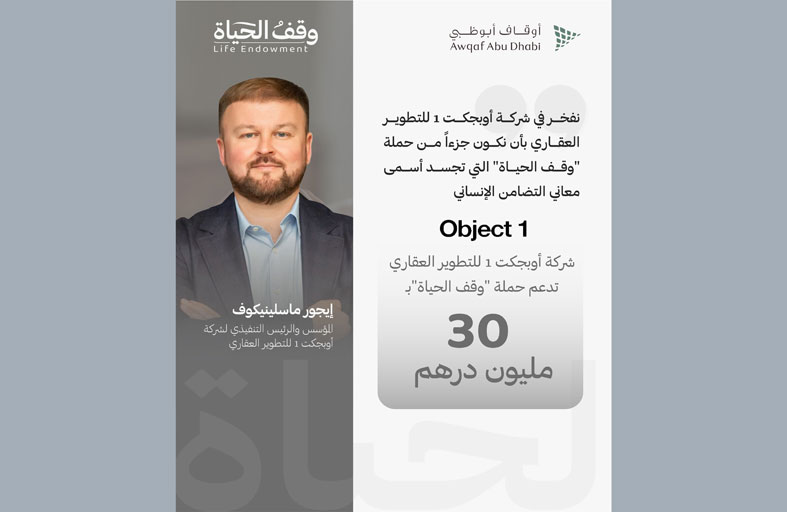 أوبجكت 1 للتطوير العقاري تدعم حملة وقف الحياة بـ 30 مليون درهم