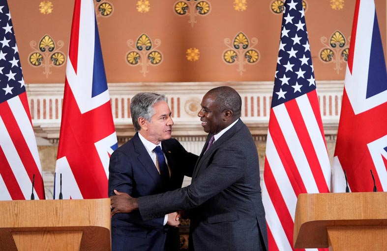 يجري وزير الخارجية الأميركي انتوني بلينكن محادثات في لندن مع نظيره البريطاني ديفيد لامي ورئيس الوزراء كير ستارمر بهدف إظهار العزم على مساعدة اوكرانيا وتقليص التباينات بين الجانبين حول غزة.