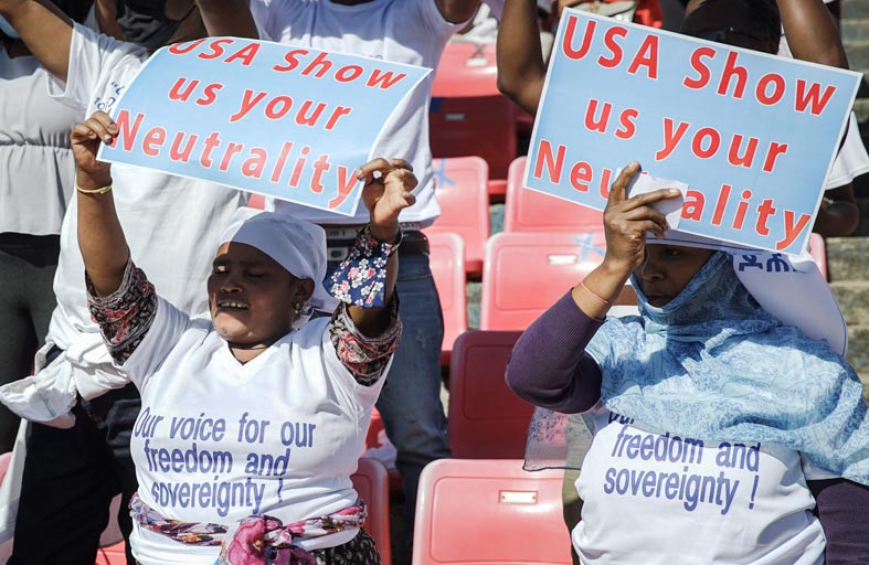 ندد متظاهرون مؤيدون للحكومة الإثيوبية أمس الأحد بالولايات المتحدة لفرضها قيودا على المساعدات لبلادهم بسبب الصراع في تيجراي خلال تجمع ضخم نظمته السلطات لتظهر الدعم الشعبي لمواقفها.