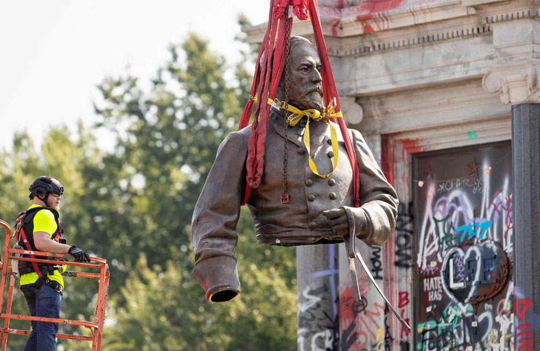 بعد عدة سنوات من التوتر الناجم عن ماضي العبودية في الولايات المتحدة، أزيل في ولاية فرجينيا تمثال ضخم لقائد قوات الجنوب خلال الحرب الأهلية، كان يعتبر أهم نصب يشكل رمزا عنصريا في البلاد.