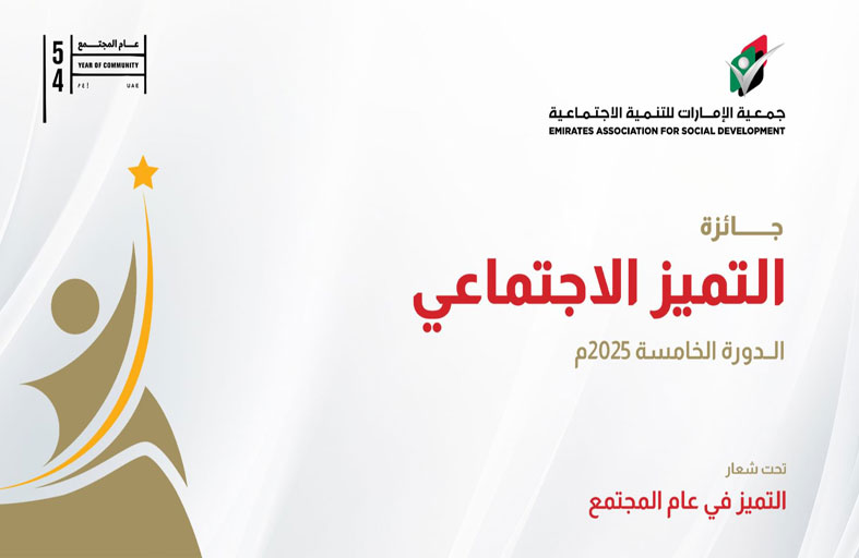 أعلنت جمعية الإمارات للتنمية الاجتماعية برأس الخيمة إطلاق الدورة الخامسة من جائزة التميز الاجتماعي، تحت شعار "التميز في عام المجتمع" لتسليط الضوء على الإنجازات الوطنية المتميزة، وتكريم المبادرات والأفراد والمؤسسات الرائدة في خدمة المجتمع.