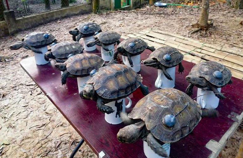 إطلاق سلاحف مهدّدة بالانقراض في غابة