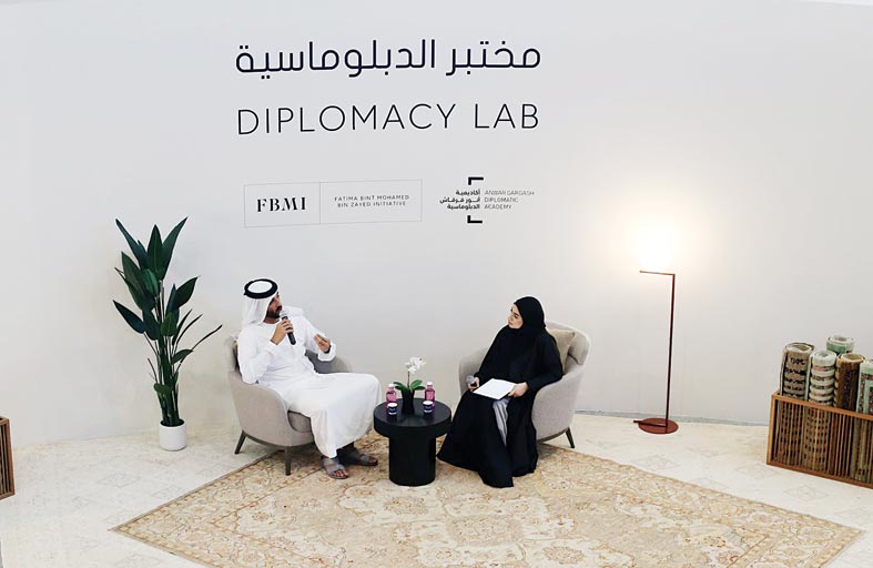 وأضاف” تسرنا استضافة هذه الجلسات في مختبرنا الذي يعد أول مختبر دبلوماسي في المنطقة، في الوقت الذي تؤدي فيه مبادرة الشيخة فاطمة بنت محمد بن زايد دوراً محورياً في منهجية الإمارات الدبلوماسية الحالية و تمكين المجتمعات من خلال النماذج المستدامة».
