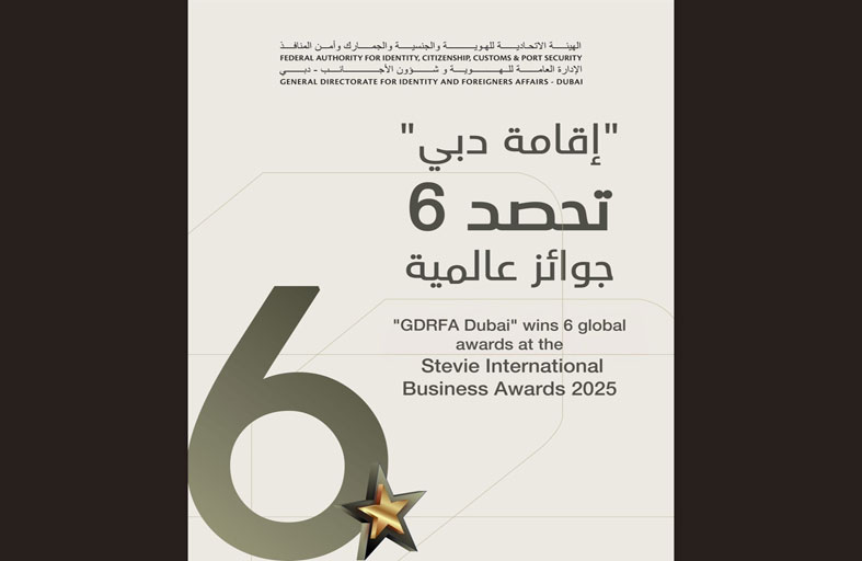 فازت الإدارة العامة للهوية وشؤون الأجانب - دبي، بست جوائز مرموقة من جوائز ستيفي الدولية للأعمال 2025، إحدى أهم الجوائز التي تحتفي بالإنجازات المتميزة والإبداع المؤسسي على مستوى العالم.
