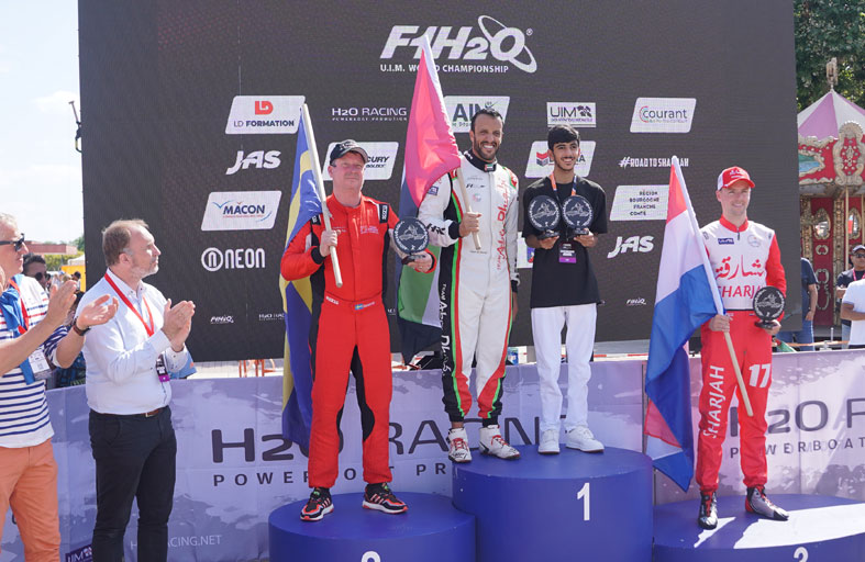 ووجه سالم الرميثي، رئيس بعثة فريق أبوظبي، الشكر إلى الشيخ راشد بن حمدان بن زايد آل نهيان، لحضوره الحدث وحرصه على تهنئة ممثلي الإمارات، كما توجه بالتهنئة إلى الشيخ محمد بن سلطان بن خليفة آل نهيان، رئيس اتحاد الإمارات للرياضات البحرية، رئيس مجلس إدارة نادي أبوظبي للرياضات البحرية، على النتائج الطيبة التي حققتها زوارق الإمارات، وبارك إنجاز القمزي وتحقيقه المركز الثالث في هذه الجولة وصعوده منصة التتويج بعد سباق قوي ومثير.وقال: "شهد السباق العديد من التحولات الدراماتيكية، وكنا نستحق منصة في الختام، سعيدون بإنجاز فريقي أبوظبي والشارقة وأيضا وصول الفيكتوري للمركز الثاني في الترتيب العام للبطولة".من ناحيته عبر ثاني القمزي، نجم فريق أبوظبي عن سعادته بتحقيق البرونزية في جولة فرنسا مؤكدا أن مراحل السباق كانت صعبة وقال: "انطلقت من المركز التاسع، وكانت هناك الكثير من التغييرات التي شهدتها تفاصيل السباق بتوقف بعض الزوارق، وانقلاب زوارق أخرى وكانت لحظات رفع العلم الأصفر من أسباب الصعوبة البالغة للسباق، ومع ذلك تمكنت من التقدم للأمام والوصول للمركز الثالث والبقاء حتى النهاية؛ حيث جاء الفوز بالمركز الثالث بالخبرة والمهارة وأنا على ثقة بأن القادم أفضل في الجولات المقبلة".