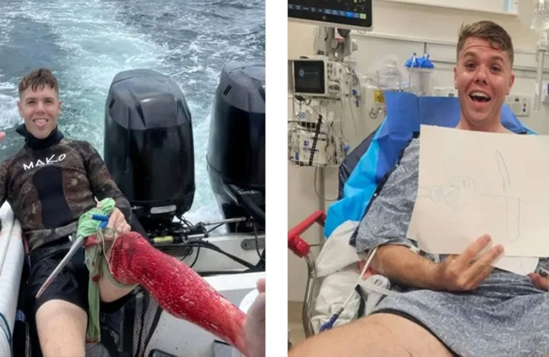 ابتسامة صياد غارق في الدماء بعد هجوم سمكة قرش