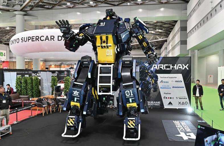 ويحمل هذا الروبوت العملاق البالغ طوله 4,5 أمتار ووزنه 3,5 أطنان، اسم “آرتشاكس”، ويمكن تحريكه بسرعة 10 كيلومترات في الساعة من جانب شخص يجلس في قمرة قيادة مجهزة بأحدث التقنيات. ويحرّك هذا الشخص كما يشاء الروبوت ذا المفاصل الـ26، بما في ذلك يداه الضخمتان، عبر عصيَي تحكّم ودوّاستين وشاشة تعمل باللمس. وأوضح يوشيدا، الرئيس الشاب لشركة “تسوبامي إنداستريز” الناشئة “أريد أن تتحقق أحلام الناس.
