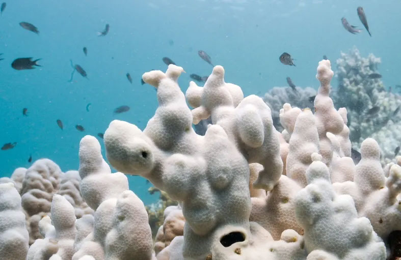 ابيضاض الشعاب المرجانية العالمية مع ارتفاع الحرارة