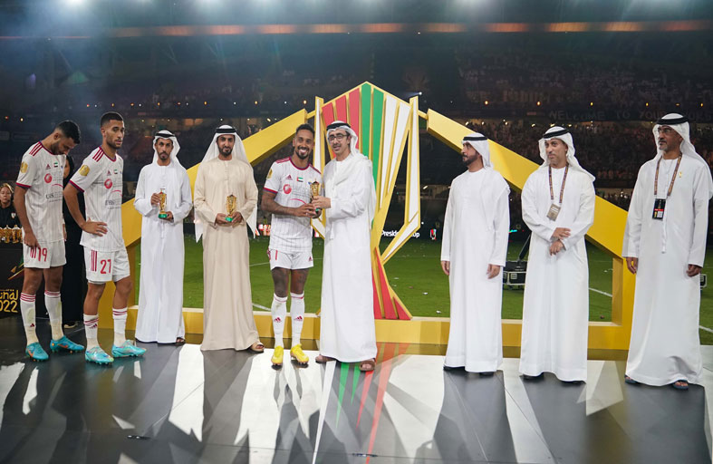 وتقدم الشيخ راشد بن حميد النعيمي بالشكر والتقدير إلى كل من ساهم في جعل هذا الحدث الكروي الذي كان يوماً لا ينسى في تاريخ الكرة الإماراتية، مشيراً إلى أن تضافر جهود الشركاء أنتج نسخة تاريخية من الناحية التنظيمية وأدخلت المسابقة في عصر جديد، عنوانه التميز والإبداع.