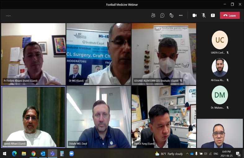 نظم اتحاد الإمارات لكرة القدم أمس الأول الجمعة بالتعاون مع مركز الفيفا الطبي المتميز بدبي ، مؤتمراً طبياً بعنوان " أحدث التقنيات الجراحية والعلاجية لقطع وترميم الرباط الصليبي " ، بمشاركة واسعة من الأطقم الطبية العاملة في الأندية والمنتخبات الوطنية الإماراتية والعالمية ، وذلك عبر تقنية الاتصال المرئي.
