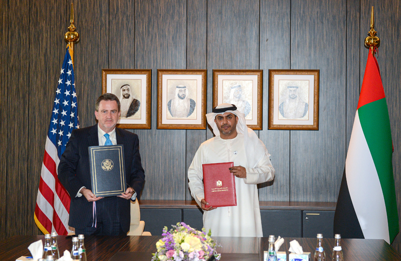 وقع الاتفاقية من جانب الدولة معالي عبدالله بن سلطان بن عواد النعيمي وزير العدل .. ومن جانب الولايات المتحدة سعادة شون مارفي ملحق الشؤون الخارجية في السفارة الأمريكية في الإمارات.